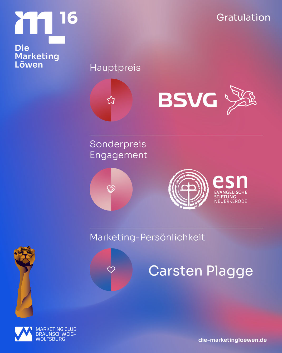 Wie es dem Marketing gelingt, diese „Liebesbeziehungen“ mit den Menschen einzugehen, haben uns unsere Gewinnerinnen und Gewinner der 16. Marketing-Löwen eindrucksvoll auf der Verleihung am 21. August 2025 im Kleinen Haus des Staatstheaters Braunschweig gezeigt!